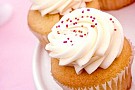 4. Bred eller spritsa frosting på cupcakes eller muffins och garnera med strössel eller blommor.