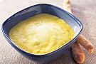 1. Låt majs, finhackad vitlök, och gurkmeja fräsa någon minut i olivolja utan att det tar färg.