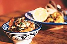2. Fräs chili, vitlök, ingefära, spiskummin och paprikapulver i olivolja en stund utan att det tar färg.