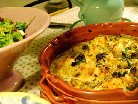 2. Under tiden vispar du ihop bechan (och orkar du inte göra egen becha, kan du köpa 3 paket ostsås, riva i lite mer parmesan i den och vips hade du en god sås).