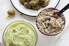2. Kronärtskocksröra: Skala och finhacka vitlöken. Mixa alla ingredienser utom yoghurt till en slät massa.Vänd ner yoghurten i massan. Servera rörorna till bröd och oliver.