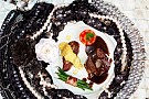 22. Servera Lägg upp en oxfilébit och en kalvfilébit på fyra fina tallrikar.