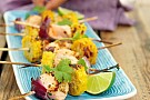 Ta fram 1 timme före grillning. Grilla på medelvärme 2–3 minuter per sida. Vänd ofta. Servera med limeklytor.