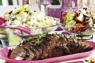 Blanda alla ingredienser till marinaden. Putsa köttet och lägg det i en plastpåse. Häll på marinaden så att allt kött täcks. Låt ligga i kyl minst 2 timmar, men gärna över natten. Sätt ugnen på 175°C. Ta upp köttet ur marinaden. Lägg det i en långpanna, salta och peppra. Tillaga i ugnen i ca 1 1/2-2 timmar (innertemperatur ca 80°C). Pensla över Ananasglaze ett par gånger under tillagningen, spara lite till serveringen. Låt köttet vila 15-20 minuter. Skär upp köttet och fördela resten av ananasglazen över. Serveras gärna till Chilipastasallad och Röd sallad med strössel. För alla Läs noga ingrediensförteckningen på grillkryddan. I övrigt är rätten fri från gluten, mjölk och ägg.