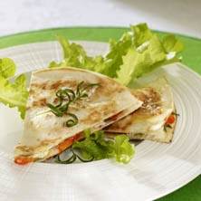 Lägg ut fyra bröd. Smula över chèvren och fördela ut paprikan, rosmarin och strö över chiliflingor. Lägg på de resterande bröden. Stek på båda sidor i stekpanna utan fett tills osten smälter. Servera med kaskadsallat som drinktilltugg eller förrätt.