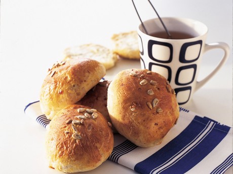 3. Mjöla bakbord och händer och baka ut till 25 runda bullar. Låt dem jäsa på plåt under bakduk ca 30 min. Sätt ugnen på 225°