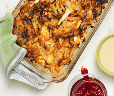 utrört i lite vatten. Smaka av med salt och peppar. Servera kålpuddingen med såsen, kokt potatis och gärna lingonsylt. För alla Rätten är fri från gluten och ägg men innehåller laktos och mjölkprotein.