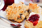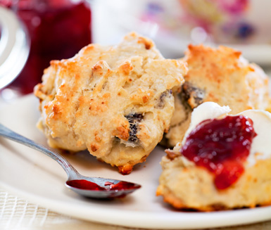 Sätt ugnen på 250°C. Blanda vetemjöl, bakpulver, någon av smaksättningarna (se Tips nedan) och salt i en bunke. Finfördela smör eller margarin i mjölblandningen. Tillsätt mjölk och rör snabbt ihop till en kladdig deg. Klicka ut 2 kakor, 8 bullar eller en längd på en plåt med bakplåtspapper (för 8 st). Grädda mitt i ugnen 10-12 minuter. Servera sconsen nygräddade med ost eller marmelad. För alla Brödet innehåller gluten men är fri från ägg.