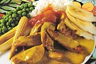 Skär kycklingen i smala strimlor. Bryn kycklingen i smör&rapsolja i en stekpanna. Krydda med salt och peppar. Rör i curry, grädde och fond. Låt allt koka 3-4 min. Servera med ris, skivad banan, minimajs och ärtor. Toppa gärna med en klick stark mango chutney.