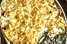 2. Smält margarin med vetemjöl och häll över mjölk. Låt koka några minuter, såsen ska vara ganska tunn. Tina spenaten och pressa ur vätskan.