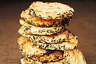 2. Ta upp degen på bakbordet och forma två rullar, ca 3 cm i diameter. Rulla dem i torkade kryddor eller nötter, t ex timjan, rosmarin eller hackade pinjenötter. Lägg rullarna i kylen i 30 minuter.