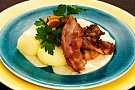 1. Stek fläsket i smör i stekpanna så det får en fin krispig yta. Peppra lite.