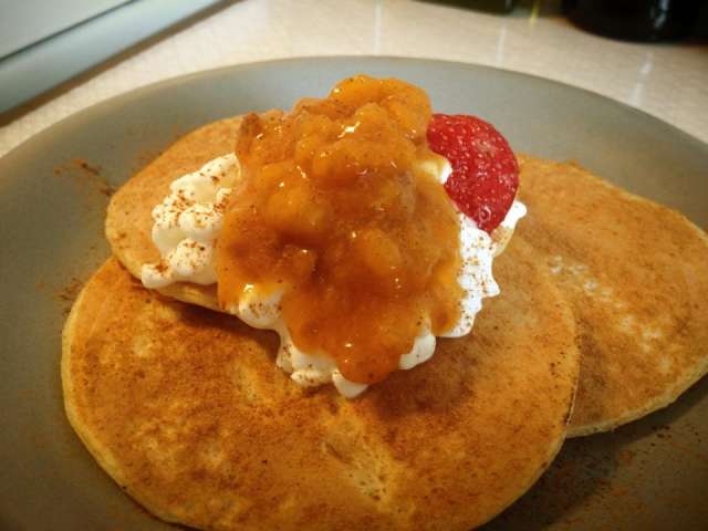Servera med lönnsirap, honung, glass, keso, bär, sylt eller vad som önskas.
