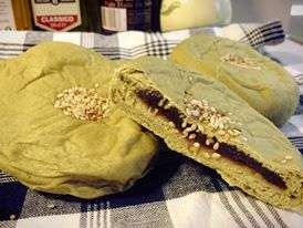 Bullar fyllda med söt bönpasta och en smak av grönt te