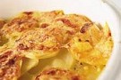 6. Fördela resten av potatisen över. Häll på resten av grädden. Strö över osten.