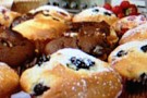 3. Placera ut pappersformar i en muffinsplat. Varva muffinssmeten med blabär i formarna.