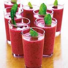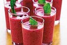 Blötlägg gojibären en stund för att de ska bli lättare att mixa. Mixa alla ingredienser till en smoothie, servera i höga glas och toppa med några fina myntablad.