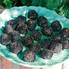 Mixa alla ingredienser och späd med lite vatten tills det går att rulla fina bollar av smeten, rulla bollarna i svarta sesamfrön. Torka falafeln på 41 grader (ca 8 timmar) eller i vanlig ugn på 50 grader (ca 7 timmar). Servera falafeln i ett vackert sallads- eller kålblad och lägg en klick Zucchinihummus och Golden Inca sås. Jag äter med händerna och drömmer mig bort till Fjärran Östern.