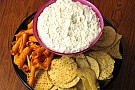 1. Guacamole: Mixa två avokado i en mixer. Blanda i pressad vitlök. Riv skalet på en lime och blanda i, pressa sedan i saften från limen. Salta. Blanda i sambal olek. Rör sedan i crème fraiche.