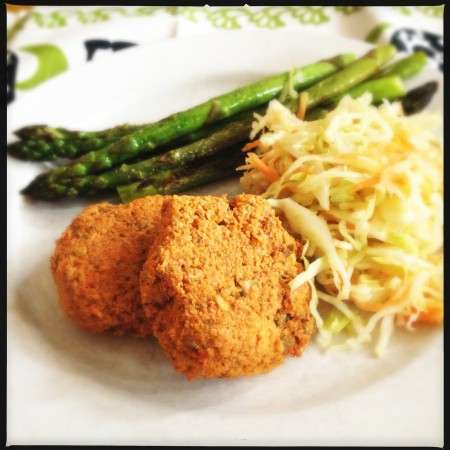 Kör alla ingredienser i en matberedare till en smet. Forma biffar och låt dem stå och sätta sig en stund innan servering.