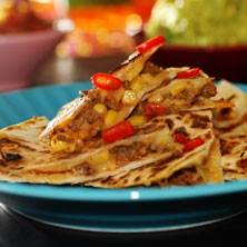 3. Dela quesadillan i 6 delar och servera på fat med salsa att skeda på.