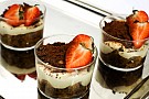 5. Upprepa en gång till, plasta och låt tiramisun stå i kylen i 6-8 timmar. Sikta över kakao vid servering. Garnera eventuellt med jordgubbar.