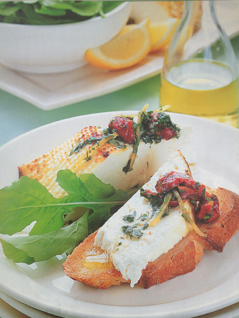 Ugnsbakad ricotta med inlagd citron o soltorkade tomater