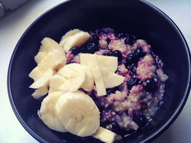 Låt gröten koka ihop så långsamt du kan/hinner så att quinoan blir så mjuk som möjligt. Ta av från plattan och låt svälla 5 min.
