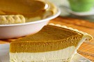 I resten av smeten blandar du i pumpapuré, kanel, kryddnejlikor och muskot. Rör tills allting är väl blandat. Häll försiktigt smeten ovanpå den vita smeten i skalet.