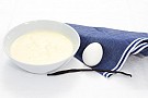 4. Ta upp vaniljstången. Vispa upp äggulorna med florsockret. Koka upp gräddvattnet.
