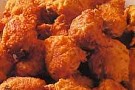 5. Hetta upp oljan i en stor gryta eller wok. Lägg i några matskedar av blandningen i grytan och fritera i tre minuter, eller tills det blir knaprigt och gyllene. Låt de färdigfriterade bitarna rinna av på hushållspapper. Upprepa med resten av blandningen. Servera med söt chilisås.