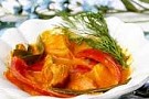 1. Hacka löken och stek den mjuk i oljan. Pressa i vitlök och stek en minut till. Tillsätt paprika, passerade tomater, buljong. Låt koka 5 minuter.