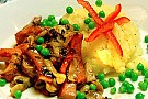 Mos med strimlad korv och lök