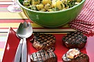 2. Torka ev av köttet och salta sparsamt. Grilla 2–4 min på varje sida beroende på biffens tjocklek och gästernas önskemål.