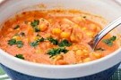 1. Skär kycklingfiléerna i bitar. Bryn i rapsolja. Tillsätt curry, tomatpuré, salt och peppar. Häll sedan på vatten, passerade tomater, grädde och lägg i hönsbuljong och pastaskruvar.