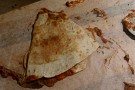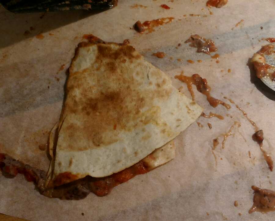 vik ett bakplåtspapper och lägg i quesedillan