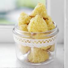 5. Forma till toppar med hjälp av två skedar och grädda i ca 15 minuter, Låt topparna svalna på plåten.