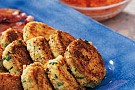 2. Forma små platta bullar ca 3 cm i diameter och vänd dem i ströbröd.