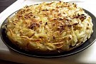 Varva potatis, lök, ost, salt och peppar och i formen.