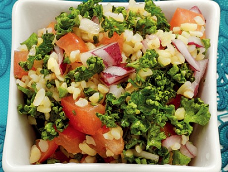 4. Blanda bovete eller bulgur, tomat, rödlök, persilja ochhackad mynta med Super sour-essensen.