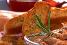 4. Skiva ciabattan på längden och ringla över lite olivolja och krydda med flingsalt och hackad rosmarin.