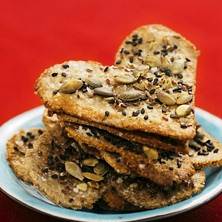 2. Dela degen i 4 delar. Kavla ut varje del till en tunn kaka och skär ut hjärtan med kniv eller med pepparkaksformar. Placera på plåtar med bakplåtspapper och nagga lätt med gaffel. Pensla med ett uppvispat ägg och strö på kummin, fänkål, frön och salt.