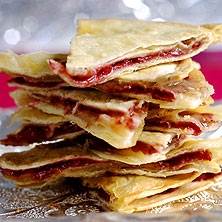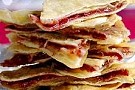 3. Hyvla osten och fördela den över. Lägg på de resterande tortillabröden och tryck till.