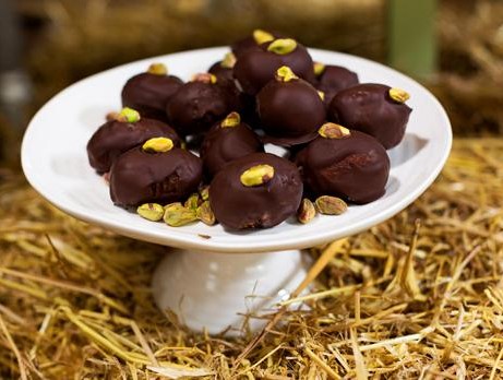 6. Doppa de mandelmassinlindade dadlarna i den smälta chokladen.