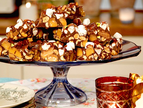 4. När fudgen har stelnat, skär din rocky road i rutor eller stänger.