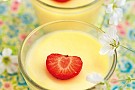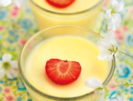 4. Garnera med skivade jordgubbar, bär eller frukt.