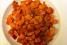 1. Sätt på vatten, skär kålroten i tärningar, ca 2-3 cm stora. (kålrötter är så olika stora, räkna ca 2 dl hackade bitar per portion) Lägg i vattnet och salta lätt. (kålrot tar ca 15 min. för att bli klar)