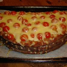 Skär bacon fint. Strimla purjolöken och skiva champinjonerna. Fräs allt i stekpanna. Tillsätt creme fraiche och grädde och låt koka tills röran tjocknar. Smaka av med salt och peppar. Gör ordning en plåt med bakplåtspapper. Lägg ut en hönökaka, bred på 1/3 av fyllningen, lägg på ytterligare en hönökaka samt fyllning, sen ytterligare en hönökaka och fyllning. Avsluta med fjärde och sista hönökakan som lock. Skiva tomaterna och lägg på locket. Toppa med den rivna osten. Sätt in i ugnen på 200 grader i ca 10 minuter.
