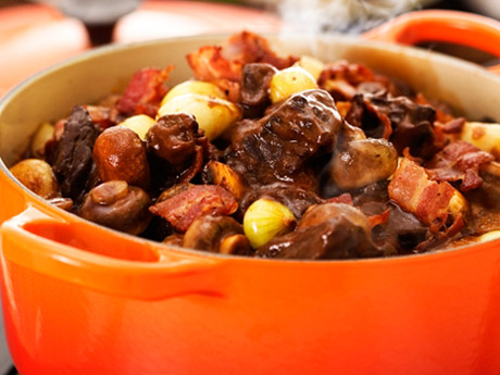 Klassisk Boeuf bourgignon med champinjoner och smålök