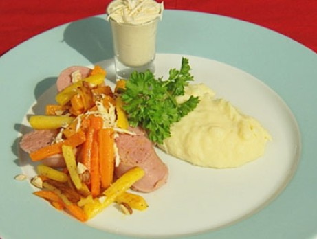 7. Servera rotfrukterna och palsternackspurén till korven. Som alternativ till korv, servera gärna med fläsklägg.